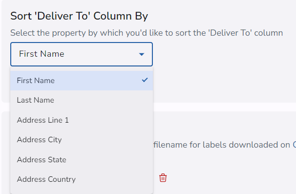 2. Click on the drop down menu and select the property you want to sort Deliver to column.