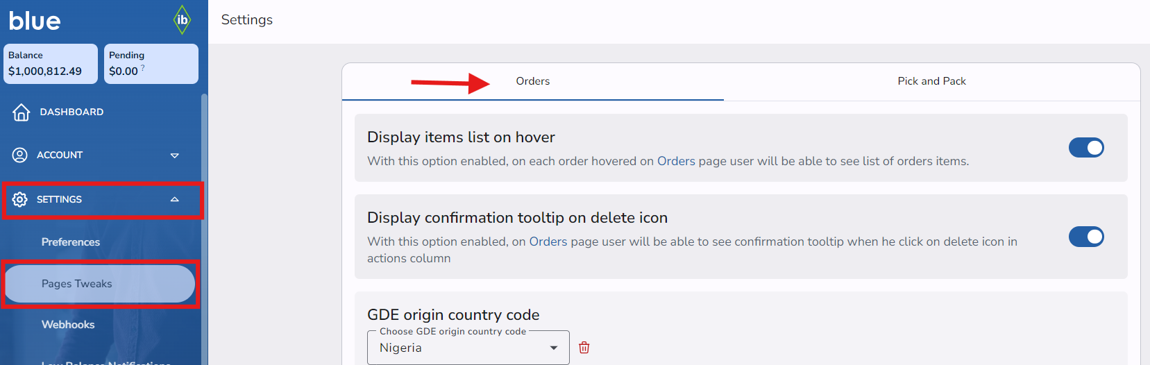 1. Go to your blue Account -->Settings -->Pages Tweaks-->Orders