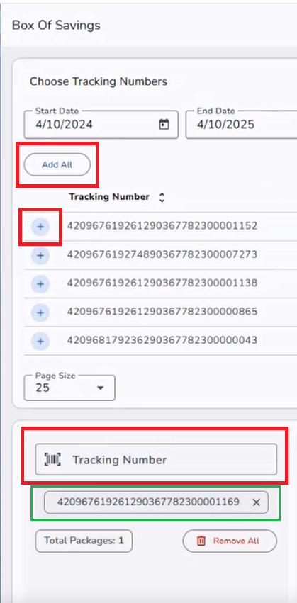 - Click the "Consolidate & Save" button, under Box of Savings. Box of Savings page will appear, listing all IB NonCon labels.