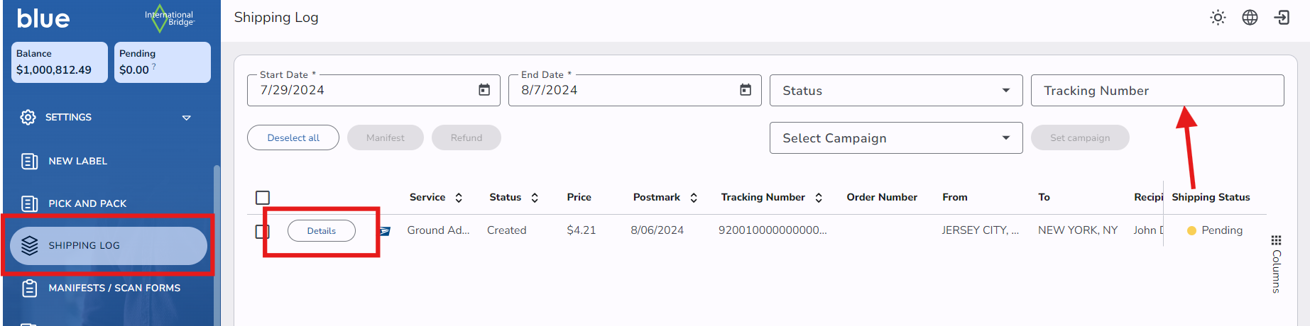 - login to your account and go to your Shipping log.
